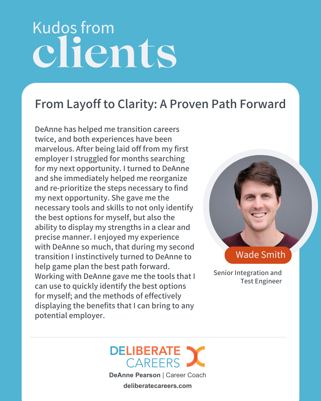 After his first year at SpaceX, Wade Smith and I engaged in a coaching relationship that ended with a mass layoff. We explored opportunities, interests, values, and goals and focused and prepared him with an individual marketing plan that yielded interviews and offers. We evaluated offers and negotiated for the best pay and geographical location that fit his personal life goals. Later, we worked together to refresh his job search strategy to facilitate relocation to LA to be near family and evaluated the risks/benefits of working with a start-up, discovering that it was an excellent fit for his skills and place in life.